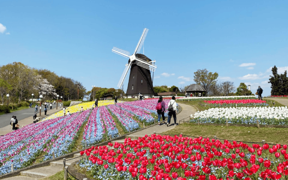 目の前に現れる大きな風車も有名で、赤ちゃんと一緒に眺めるだけでちょっと特別な気持ちになれますよ。遊具はまだ早い0歳期こそ、ピクニック目的で行くのがおすすめです。